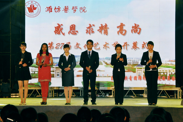 校学生会主席、研究生会主席、国家奖学金获得者等六位学生代表致开幕辞,共同宣布我校第二十七届文化艺术节隆重开幕。