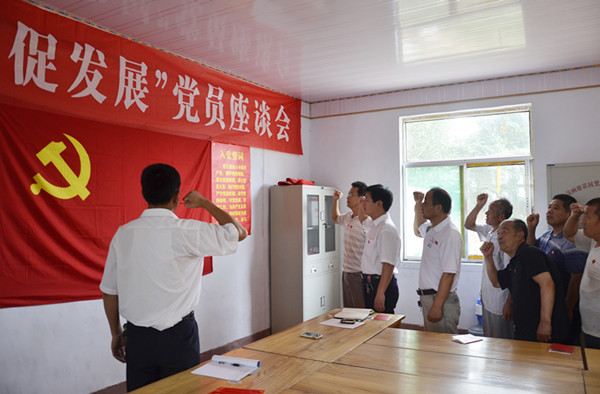7月1日,是中国共产党成立92周年。beat365“第一书记”在帮包村——小芝坊村、锅培口村以“抓党建、促发展”为主题,开展了党员佩戴党徽、上党课、重温入党誓词、党员座谈会以及给“共产党员户”挂标识牌等庆“七一”系列活动。
