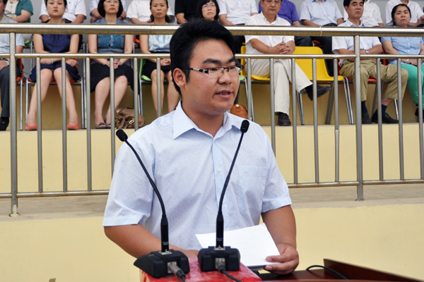 毕业生代表王越、西部计划志愿者代表卢婷婷、毕业生亲属代表陈祥海和教师代表刘长云分别在毕业典礼上发言。