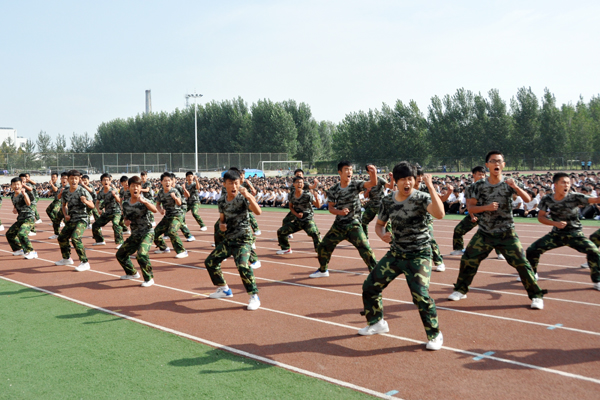 阅兵式开始,马安宁在林峰的陪同下,逐一检阅了各支方队。分列式开始后,3600名参训同学伴着高昂的军歌旋律,喊着响亮的口号,精神饱满地走过主席台,向到会的领导、老师展现了他们的飒爽英姿和良好精神面貌。队列和军体拳的表演赢得了全场热烈的掌声。