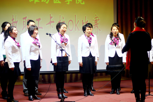 比赛现场,12位进入决赛的选手演绎着一首首激情、动听的歌曲,赢得了观众和评委的阵阵掌声。教职工排舞协会和教职工合唱团的表演,使赛场气氛更加热烈。经过激烈的角逐,马春晓、王东海、刘吉恒获一等奖。