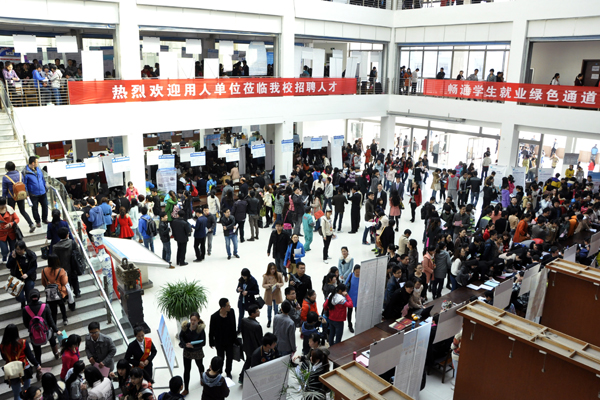 上午9时,双选会现场气氛热烈,井然有序。众多单位的展位前排满了投递简历和等待咨询的毕业生,他们文明礼貌地了解用人单位用人标准,询问就业待遇及个人未来成长政策,在众多岗位中寻觅适合自己的心仪之选。各院(系)领导在招聘会现场了解用人单位需求信息和市场走向,为本院系专业建设发展收集一手资料。学生辅导员、就业指导教师们都在本院系展位前指导同学们科学定位,理性选择。350名志愿者热情周到地为用人单位提供一对一服务。许多低年级的在校学生也来到双选会,现场感受气氛,提前为将来择业进行模拟演练。