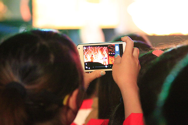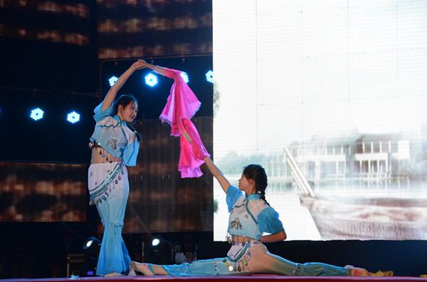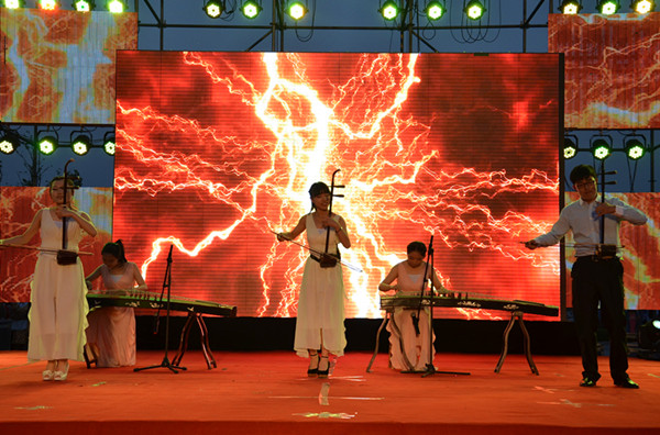 开幕式晚会在欢快优美的器乐合奏《中国风》中拉开了帷幕。轻快舒畅的舞蹈《呼唤绿荫》踏着春天的节拍带来了青春欢乐的气息;留学生带来的独唱《我的歌声里》婉转悠扬,博得了观众的阵阵喝彩;表演唱《念尊亲》将经典诗文融入其中,弘扬了“百善孝为先”感念亲恩的优秀传统美德;慷慨激昂的朗诵《中华传承》用雄壮和豪迈诠释了中华文化的博大精深和源远流长;“生儿养女一辈子,满脑子都是孩子哭了笑了”一首催人泪下的《时间都去哪儿了》让观众深刻体会到时间的易逝与亲情的珍贵;武术《中国人》中持剑者移步轻盈,舞刀者落脚沉稳,将武术这一国粹演绎的淋漓尽致;活力四射的歌伴舞《向梦想出发》歌颂了青春年华的斑斓梦想,将晚会气氛推向高潮,也为此次开幕式画上了圆满的句号。
