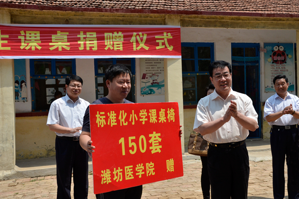 6月12日,学校党委书记石增立带领党委组织部、资产管理处负责人,赴德州市平原县腰站镇相马河社区小学,为相马河小学捐赠150套课桌椅,捐赠仪式在社区小学举行。
