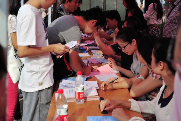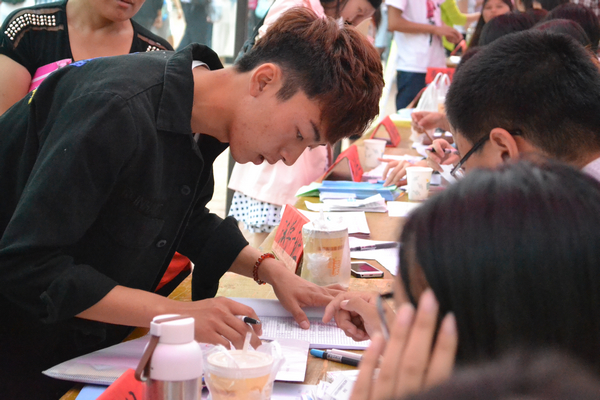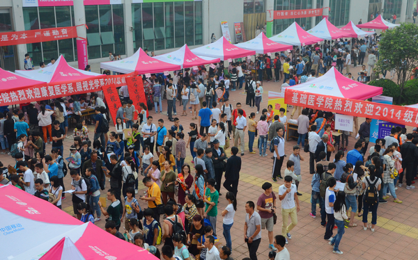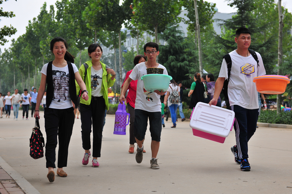 新生入学报到工作紧张有序。学校杏林餐厅前的广场早晨六点钟就人头攒动,搬桌子、搭帐篷、立宣传板,老生们分工明确,效率极高。上午,各迎新站点,院(系)负责人、全体辅导员、班主任及高年级同学都在热情地接待新生,帮忙办理各项入学手续,并耐心解答学生和家长的问询。学校搭建“绿色通道”为经济困难学生办理缓交学费手续,为每位同学发放“学生资助工作服务信息卡”,并提供学校资助政策咨询。学生工作处印发了新生报到手册,以帮助新生了解报到程序,熟悉学校生活及周边环境,引领学生尽快融入校园环境。学校餐厅从早晨五点就开始“全天候”供应饭菜,保证家长和学生随时随刻都能吃上热乎乎的饭菜。