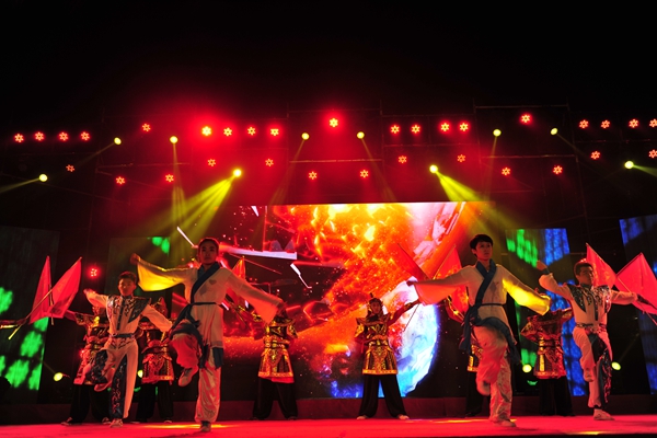 晚会在《花开十月》的优美舞姿和同学们热情的欢呼中拉开了帷幕。大气磅礴的开场调动了大家的情绪,整个晚会在荧光棒辉映下变成了五彩缤纷闪烁摇曳的海洋。紧接着欢快而又充满正能量的歌曲串烧《向快乐出发》彻底点燃了现场气氛,全场一起呐喊着随着演唱者纯粹、干净利索并具有穿透力的歌声有节奏地挥舞荧光棒。武术表演《壮志凌云》锦旗飞扬,双节棍舞动,展现了青年学子的激情与力量,展现了博大精深的中华文化。晚会场面达到最爆棚的,当属辅导员老师们带来的《相亲相爱一家人》合唱,舒缓动人的旋律和温馨感人的话语,回应着全场同学们的热情,抒发了老师们对2014级新同学的关切与厚望,整个表演流露出浓浓的师生情谊。2014级研究生带来的歌伴舞《一路上有你》,让人联想到求学路上,有爱人的陪伴,有朋友的支持,更有父母的呵护,彼此扶持,一路有你很温暖。晚会在合唱《光荣与梦想》激昂的旋律和同学们对未来美好的憧憬中圆满落幕。