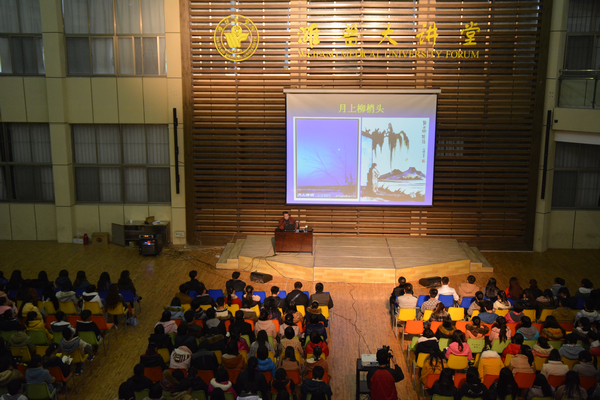 “山楂树是爱情树吗?”刘广涛以此问题为引,漫谈海子的诗歌及其诗样的人生。他以歌曲、小说、电影中的山楂树这一意象为始,层层推进,从本诗的解读难点切入,并配以图片,将原本抽象的辞藻转化为通俗易懂的优美小品文,剖析海子诗歌《山楂树》中蕴藏的细腻情感,又将其与西方文化进行对比,感悟海子诗歌的生命意识与精神世界。刘广涛讲座期间邀请同学共同朗诵《山楂树》,赢得心灵的共鸣。