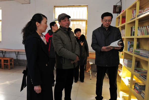 走访慰问完困难家庭后,管英俊一行到小芝坊村查看了近期文化大院5万元文化设备专项资金的建设状况,并代表学校向小芝坊村文化大院农家书屋捐赠木书架4个、圈椅10把、圆铁凳30把、阅览桌6张,还有学校购买和机关党总支党员干部捐赠的各类图书1000余册。
