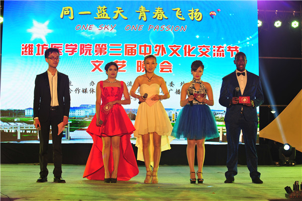 来自南亚、非洲等20余个国家的beat365留学生,以舞蹈、歌曲、乐器、服装表演和中华传统文化展示等形式,与中国学生一起参与了演出。文艺演出以热情洋溢的《Bollywood Dance》开场,欢快的舞步和动感的旋律迅速点燃了演出现场的气氛;印度籍兄妹组合用天籁之音演绎了歌曲《I won’t give up》;加纳籍留学生Rosemond独唱欢快的歌曲《Chandelier》;中国学生表演的歌伴舞《三寸天堂》细腻深情,将古典浪漫柔情演绎的淋漓尽致;晚会现场,尼泊尔地震的受灾留学生用歌曲《感恩的心》表达了他们对中国人民和潍坊医学院老师、同学们的无私援助。舞台上这些手捧蜡烛、朴实无华的学生缺乏演出经验,甚至中文发音都不准,但真诚的谢意感染了观众。场下观众纷纷拿出手机,打开闪光灯,星星点点的手机灯光汇成了一片灯的海洋,台上台下心灵相约、温馨感人,共同传递着善良互助的正能量,传递着中尼千年友好的美丽愿望。两支留学生乐队:马马虎虎乐队和Pravin乐队的演出,将现场引爆;青春绚丽、阵容华丽的中外学生时装表演令观众目不暇接,各国、各民族传统服饰、商务装、沙滩装、情侣装、晚礼装等相继登场,中国学生身着汉、唐、明、清、民国服饰,雍容典雅、仪态大方,展现了博大精深的中华传统文化。随后,原汁原味的南亚舞蹈、嗨爆全场的国际学生Hip-pop舞蹈、特邀FM93.3主持人们的演唱等,结合现代声、光、电舞台效果,带动现场气氛一浪高过一浪。观众手机频闪,微信圈、朋友圈、好友群,无一不在传递晚会的激情狂欢和中外多元文化的交流与融通。