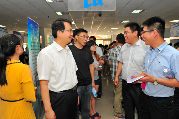 7月1日,以“科学择业,成就梦想”为主题的2015届毕业季招聘会在浮烟山校区图书馆举办。副校长葛国文到招聘现场进行了指导。