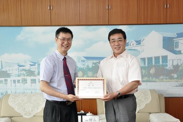 7月7日下午,学校举行特聘教授聘任仪式,聘任美国圣约翰大学药学系肿瘤药理室主任陈哲生教授为客座教授。校党委书记石增立为陈哲生颁发聘书,并进行了座谈。学校办公室、人事处、药学院负责同志参加了聘任仪式。