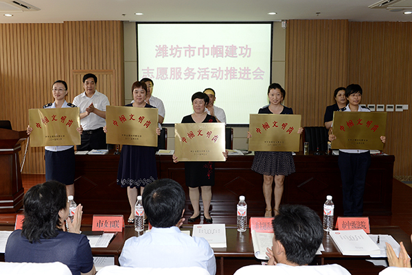7月17日上午,潍坊市巾帼建功、志愿服务活动推进会在beat365附属生殖医学中心四楼报告厅举行。市委常委、宣传部部长初宝杰,潍坊医学院党委副书记、附属医院党委书记张潍华,潍坊医学院副校长井西学,市妇联主席田素英等参加会议。初宝杰做了重要讲话,张潍华代表学校致欢迎词。