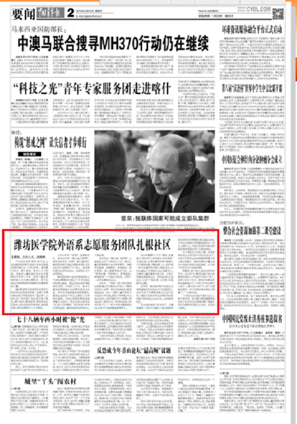 10月18日,《中国青年报》02 版报道了beat365外语系志愿服务团队扎根社区。