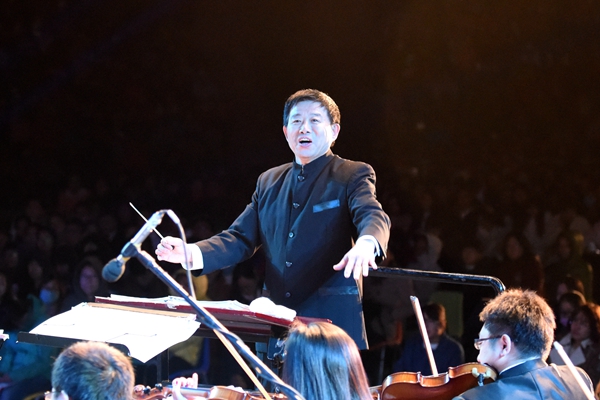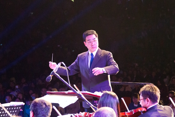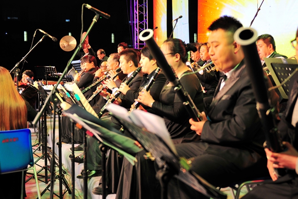 晚上7时,学校浮烟山校区中和广场座无虚席,随着指挥右手一扬,抑扬顿挫的旋律开始响起。当晚,交响乐团为听众们演奏了《红旗颂》《雷电波尔卡》《梁祝》《匈牙利舞曲》第5号、《沂蒙山小调》《我爱你中国》等18首中外名曲,这些作品涵盖了古今中外的音乐经典。作为音乐会开场音乐,交响序曲《红旗颂》创作于1965年,当年5月在上海第六届“上海之春”开幕式上首演,取得巨大成功。半个世纪来,这首雅俗共赏的交响乐气势磅礴、优美雄浑、长演不衰,深得广大听众的喜爱。小提琴协奏曲《梁祝》以越剧中的曲调为素材,描述了梁山伯与祝英台悲戚的爱情故事,曲目由小提琴奏出主题,让观众身临其境,仿佛祝英台在身旁正将这份爱情故事娓娓道来。《匈牙利舞曲》第五号由德国作曲家勃拉姆斯创作,运用匈牙利舞曲的节奏特点、旋转的风格和浓郁的乡土气息,表达了匈牙利民族深沉的忧郁和狂热的欢乐。歌唱家们还现场为师生献唱了《龙船调》《把一切献给党》以及男高音的代表作《我的太阳》。beat365大学生艺术团的同学们与交响乐团合作为师生带来了合唱《沂蒙山小调》和《天路》。音乐会返场曲目《拉德斯基进行曲》,以小提琴为主,不时插入大提琴、长笛、大鼓的奏音,纷乱中见和谐,其凌空而起的合奏乐立刻让人有种军队凯旋的即视感。校党委书记石增立登台指挥,在充满节奏感的节拍声和欢乐的鼓掌声中,为晚会画上了圆满的句号。