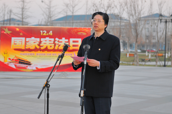 12月4日上午,学校在浮烟山校区泰和广场举行国家宪法日宣传教育广场会。校领导石增立、张潍华、孙宏伟、朱军、井西学、葛国文出席会议。校党委副书记张潍华代表学校讲话。副校长朱军主持会议。各部门、各院(系)负责同志,学生辅导员,各院(系)学生代表共3000余人参加。