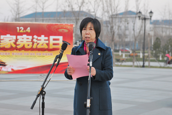 特别升国旗仪式后,张潍华代表学校作了讲话。她指出,积极开展宪法教育,大力弘扬宪法精神,对增强全体师生医护员工的宪法意识和法治观念,促进依法治教和依法治校进程,营造浓厚法治文化氛围都具有十分重要的意义。她简要介绍了宪法在国家法律体系中的地位、内容及作用。并希望全校师生医护员工要忠于宪法、遵守宪法、维护宪法,认真履行宪法赋予的公民权利和义务。培养法治思维和法治意识,自觉尊法、守法、学法、用法,努力培育公开、公平、公正的法治文化,加快推进依法治校建设。