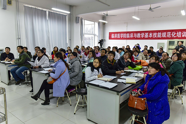 培训时间共计4天,培训对象为从事基础医学教学的全体专任教师和实验技术人员,内容包括临床思维课堂教学和临床基本技能规范,采取讲座、演示教学以及技能训练的形式进行。