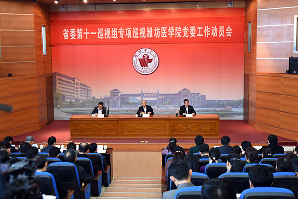 3月18日上午,省委第十一巡视组专项巡视潍坊医学院党委工作动员会召开。巡视组组长姜奇作动员讲话,潍坊医学院党委书记石增立主持会议并作表态发言。