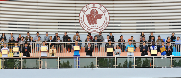 副校长朱军致闭幕词,他向获奖的个人和集体表示祝贺,向为运动会成功举办付出辛勤劳动的全体裁判员、工作人员、志愿者和广大热情文明的观众表示感谢。他指出广大师生医护员工在组织、参与比赛的过程中表现出了强烈的集体荣誉感和团结协作、争创一流的精神面貌,发扬了“自强不息,锐意进取”的潍医精神。他希望大家把在本次运动会中所表现出来的爱校强校、以校为荣的主人翁意识和精诚团结、顽强拼搏的精神风貌带到今后的工作、学习和生活中,为实现学校事业又好又快发展做出新的更大贡献。