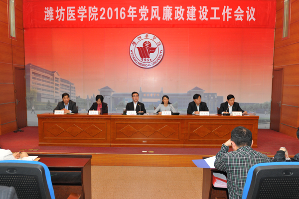 4月28日下午,学校在浮烟山校区办公楼一楼报告厅召开2016年党风廉政建设工作会议。校领导石增立、管英俊、张潍华、孙宏伟、井西学、傅大军出席会议。校党委书记石增立作重要讲话。校党委副书记、校长管英俊主持会议。