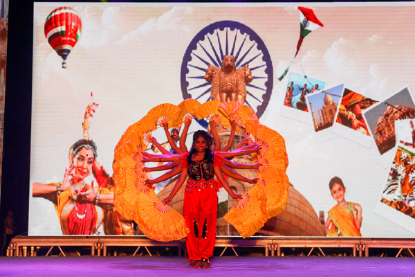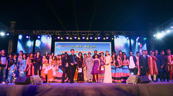 晚上七时许,在歌曲《七里香》和《Have You Ever Seen the Rain》青春洋溢、蓬勃动感的歌声中,晚会拉开了帷幕。伴着几滴应景的雨滴,歌曲将在场师生带入了朦胧婉约的意境当中。在绚丽唯美的气氛里,《Love Yourself》展现了印度兄妹动人的歌喉。由留学生带来的舞蹈表演同样惊艳,展现了瑰丽奇谲、充满异域风情的印度邦族舞蹈。古吉拉特邦舞蹈柔情百媚,风格多姿多彩;曼尼普尔邦舞蹈风格优雅古典,让人为之陶醉……或优美轻盈,或动感时尚的舞步将晚会推向一个又一个高潮。金阳公益志愿者们带来的京歌旗袍秀《梨花颂》将大气磅礴的京剧和典雅风情的旗袍巧妙地融为一体,武术表演《中国龙》则虎虎生威,让人叹为观止。随后,中外同学们共同演绎的时装表演一出场就吸引了所有人的眼球,既融合了中外文化的服装元素,又涵盖了传统古典和现代时尚的文化元素,台上模特的一举手一投足,都引起台下掌声和喝彩声不断,瞬间点燃了现场观众热情,将晚会的气氛推向最高。最后,在悠扬婉转的《The Rose》歌声中,晚会圆满落幕。