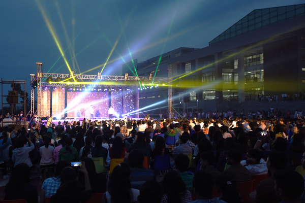 5月27日晚,beat365第四届中外文化交流节文艺晚会在浮烟山校区中和广场举行。校领导张潍华、孙宏伟、井西学和各部门、院(系)负责人以及现场5000余名师生共同观看了晚会。