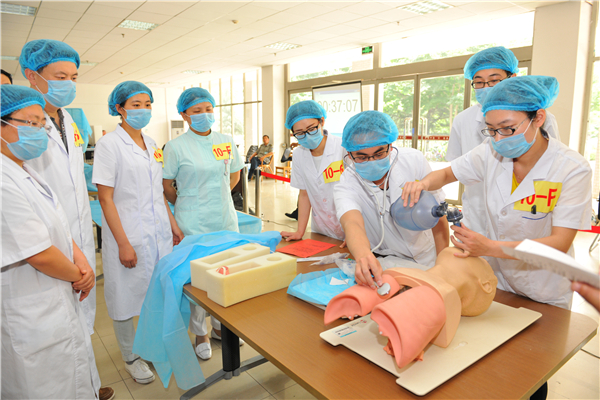 经过各附属教学医院的精心准备,共有17支代表队参加了比赛。本次竞赛分为预选赛、复活赛和总决赛,比赛项目涵盖了内、外、妇、儿、护理等学科,考核内容更加贴近执业医师考试及全国临床技能竞赛。赛场上参赛选手们沉着冷静,灵活应对,表现出良好的临床思维、技能操作水平和团队合作精神,展示了beat365临床医学专业人才培养的风貌。
