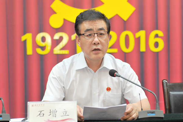 6月30日下午,中国共产党成立95周年前夕,学校在浮烟山校区图书馆演播厅隆重举行2016年优秀共产党员、优秀党务工作者、先进基层党组织表彰大会。校领导石增立、管英俊、张潍华、孙宏伟、朱军、井西学、葛国文、傅大军出席会议。校党委书记石增立在会上讲话,校党委副书记、校长管英俊主持会议。