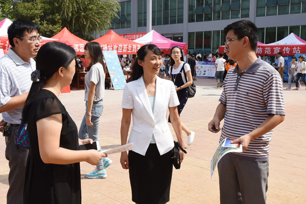 校党委副书记、校长管英俊了解迎新工作情况 |