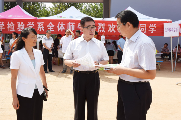 学校领导高度重视迎新工作,校党委书记石增立,校党委副书记、校长管英俊,副校长葛国文来到迎新现场,了解新生报到情况,对各院(系)的迎新工作进行指导,并与新生合影留念。校领导来到学生公寓,看望已经入住的新生,仔细询问了他们对校园环境、专业选择、未来发展等方面的想法。学校领导对新生选择潍坊医学院表示欢迎,对学生家长的信任表示感谢,并希望同学们尽快适应环境,熟悉大学生活,融入潍医这个大家庭。