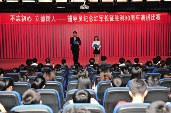 9月30日上午,由党委宣传部、学生工作部(处)共同举办的纪念红军长征胜利80周年辅导员演讲比赛在图书馆演播厅举行。校党委书记石增立、校党委副书记张潍华出席活动。
