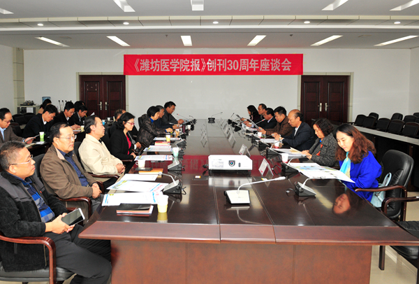 三十载锐意进取默默耕耘,三十载春华秋实奋进如歌。10月27日下午,《潍坊医学院报》创刊30周年座谈会在办公楼三楼会议室举行。校党委副书记张潍华,省新闻出版广电局新闻报刊处副处长陈业辉,中国高校校报协会副理事长、山东省高校校报研究会理事长、山东师大报社社长兼总编辑王晓华,省高校校报研究会副理事长、潍坊学院新闻中心主任韩永忠,省高校校报研究会副理事长、聊城大学宣传部副部长王秀清,省高校校报研究会副理事长、山东农大报社副社长杨宇,省高校校报研究会副理事长、济南大学报社社长刘珂珂,省高校校报研究会常务理事、山东中医药大学宣传部副部长、报社社长张昕出席座谈会。学校部分职能部门负责同志、党总支(党委)书记代表,离退休老干部代表,校报历任总编辑及师生代表参加座谈会。党委宣传部(党委统战部)部长王世群主持座谈会。