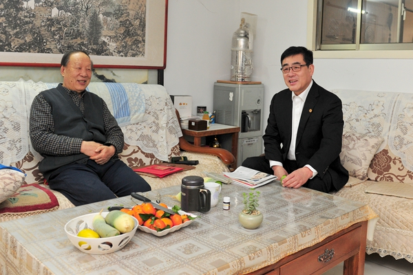 在春节来临之际,校领导石增立、管英俊、张潍华、孙宏伟、朱军、井西学、葛国文、傅大军分别到离退休老同志家中走访慰问,为他们送去学校亲切的关怀和新春祝福。