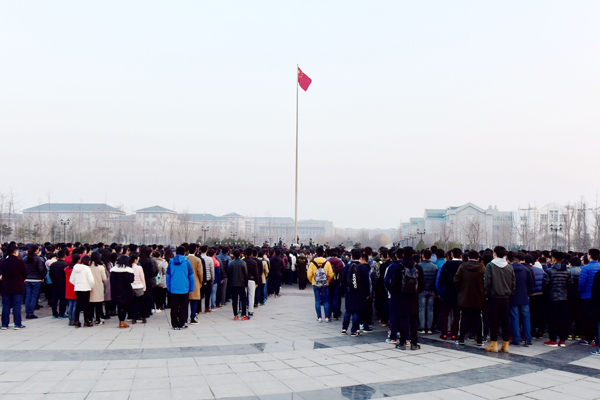 2月27日清晨,学校新学期升国旗仪式在泰和广场隆重举行。校党委副书记张潍华、副校长葛国文,宣传部、教务学工党总支、团委、临床医学院负责人和辅导员以及1500余名学生代表参加了升旗仪式。