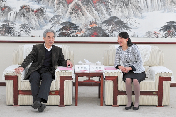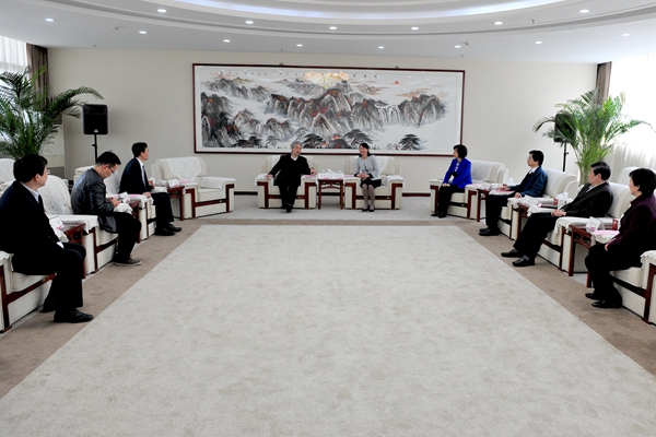 3月30日上午,中国工程院院士、原国家卫生部常务副部长王陇德来beat365指导工作。校长管英俊、校党委副书记张潍华、副校长朱军、党委委员傅大军、副校长刘军、纪委书记田艳玲在办公楼五楼接待室会见了来宾。