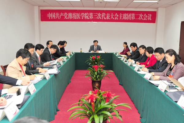 4月12日下午,中国共产党潍坊医学院第三次代表大会主席团在图书馆121会议室举行第二次会议。校党委副书记、校长管英俊主持会议。