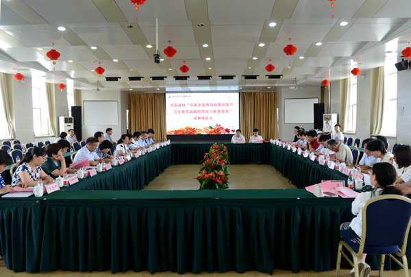 6月22日上午,全国政协常委、教科文卫体委员会副主任黄洁夫率全国政协调研组,就“实施全面二孩政策后,医疗卫生服务面临的挑战与配套政策”来beat365附属医院调研。山东省政协副主席赵家军,潍坊市政协副主席李士来,beat365校长管英俊,副校长、附属医院党委书记葛国文,附属医院院长胡温庭等陪同调研全程。