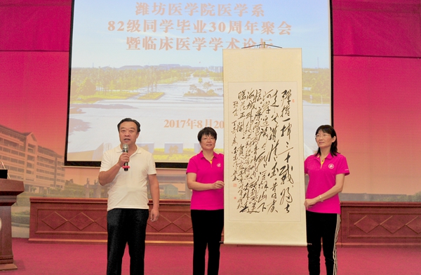 20日上午,医学系82级同学毕业30周年纪念大会暨临床医学论坛在新校区报告厅举行。管英俊代表学校致辞,欢迎校友们回到母校,对校友们给予母校的关心和支持表示感谢。她向校友们介绍了毕业30年来学校发生的变化,传递了学校凝心聚力,发奋图强争创医科大学的坚定信心。时任82级老师代表姜维茂、张英喜、韩继明、刘典恩、王爱成等老师们登上讲台,为同学们再上一堂课,谆谆教诲,言辞恳切,赢得了校友们热烈的掌声。随后同学代表李树国、贾绍友、刘福生、冯新恒、王继东、李建彬、季有信等上台发言,汇报了自己毕业30年的发展,用实际成绩,向母校交了一份满意的答卷。