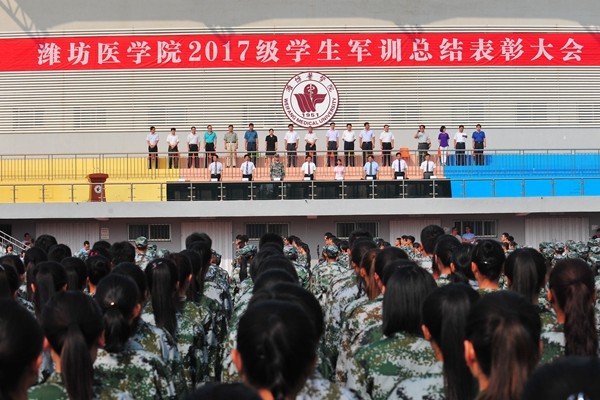 朱军作军训总结讲话。他首先向承担本次军训工作的71602部队官兵表示衷心感谢,并向在军训中涌现出来的先进集体和个人表示热烈祝贺。他指出,军训时间虽然短暂,但留下的却是最难忘回忆和最宝贵财富。他希望同学们不断巩固军训成果,严格要求自我,不断追求卓越;明确发展目标,学好专业知识,苦练专业技能;珍惜美好时光,继承和发扬“自强不息 锐意进取”的潍医精神,不忘初心,不负韶华,砥砺前行,用青春和汗水去创造更加灿烂美好的未来!