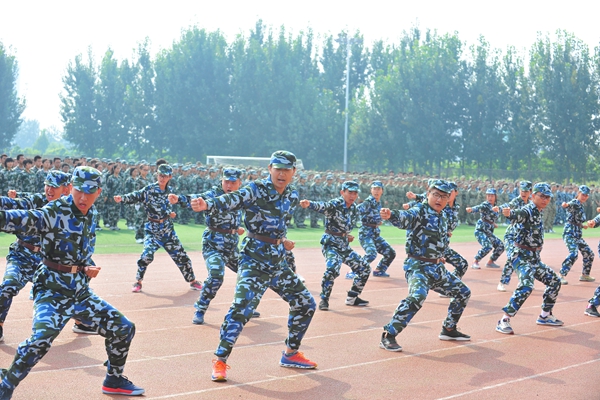 军训工作领导小组全体成员,全体教官,2017级辅导员、班主任及全体参训学生参加大会。