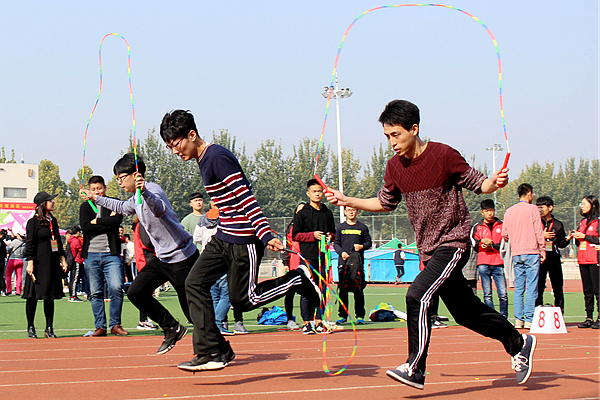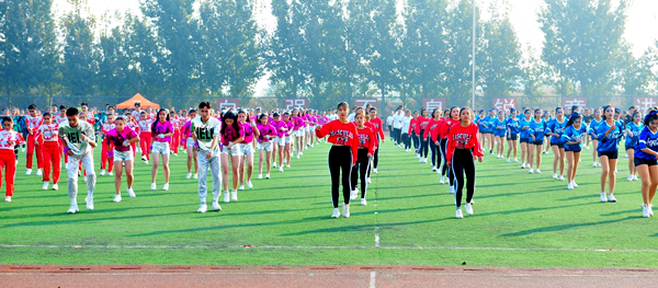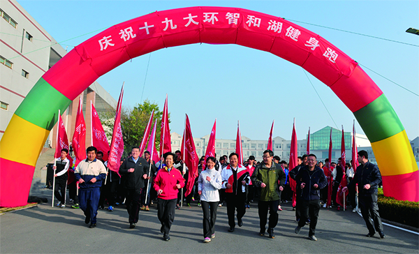 校长管英俊宣布阳光健身活动正式开始。校领导与师生一起参与了“庆祝十九大,环智和湖健身跑”,并观看了健美操比赛。