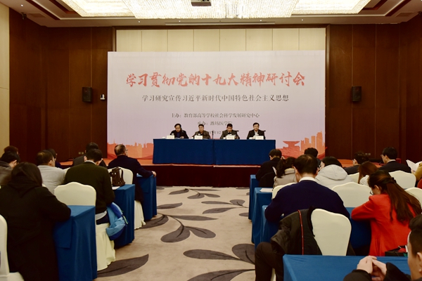 为深入学习贯彻党的十九大精神,积极推进习近平新时代中国特色社会主义思想的研究宣传工作,12月9日,由教育部高等学校社会科学发展研究中心主办,beat365承办的“学习贯彻党的十九大精神研讨会”在潍坊举行。教育部高等学校社会科学发展研究中心主任、博士生导师王炳林教授,山东省社科联党组副书记、副主席周忠高教授,齐鲁师范学院院长林松柏教授,东北师范大学马克思主义学部部长、博士生导师庞立生教授,《中共中央党校学报》副主编、博士生导师刘学侠教授,beat365党委书记李欣章,校党委副书记张潍华出席开幕式。张潍华主持开幕式。副校长刘军主持闭幕式。