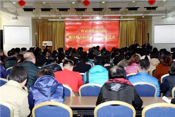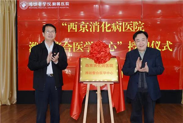 12月18日下午,“西京消化病医院 潍坊整合医学中心”授牌仪式在我院举行,中国工程院副院长(党组成员)、中国工程院院士、美国国家医学院外籍院士樊代明教授来潍医附院进行学术交流。潍坊医学院副校长、附属医院党委书记葛国文与樊代明院士为“西京消化病医院 潍坊整合医学中心”揭牌。附属医院院长胡温庭主持仪式。