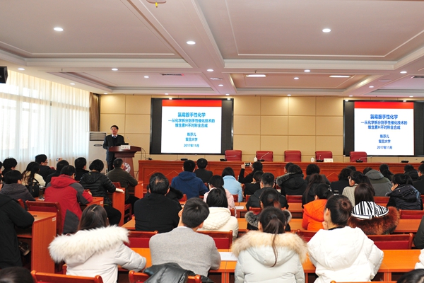 聘任仪式后,陈芬儿院士做客beat365院士讲堂,以《氯霉胺的手性药物化学一从手性拆分到手性催化的维生素H不对称全合成》为题作了精彩的报告,他结合自身的科研经历,详细介绍了如何以工业废弃物氯霉胺为手性模板,开发了一系列氯霉胺类手性催化剂及配套的醇解技术,在国际首创了催化立体选择性维生素H生产新工艺。