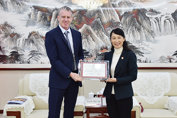 1月15日,学校在办公楼五楼接待室举行聘任仪式,聘请英国曼彻斯特城市大学Mark Slevin教授为beat365特聘教授。校长管英俊为Mark Slevin教授颁发了聘书并座谈。副校长刘军出席聘任仪式。党委办公室(学院办公室)、科研处、人事处负责人参加了聘任仪式。