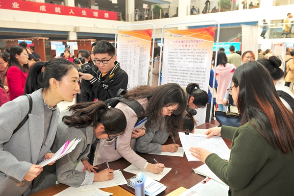 本次校园双选会吸引了来自全国各地500余家用人单位参加,提供就业总岗位数16685个。参会单位数目之多再创历史新高。从地区看,用人单位主要来自鲁、京、津、沪、冀、渝、苏、浙、川等省市,地区覆盖面积较往年来看更广。从单位性质看,各类事业单位约占53%,各类企业约占47%。从行业看,涉及医疗、护理、药品、食品、生物技术、管理、营销、心理等领域。参会单位表现出的良好人才需求态势,为毕业生提供了更多的机会和广阔的发展平台。