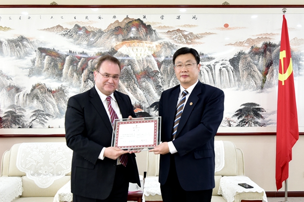 3月30日下午,学校在办公楼五楼接待室举行聘任仪式,聘任美国工程院、医学院院士,美国莱斯大学Antonios G. Mikos教授和韩国延世大学In-Seop Lee教授为beat365客座教授。副校长刘军为两位专家颁发了客座教授聘书并座谈。科研处、人事处、药学院等部门负责人参加了聘任仪式。