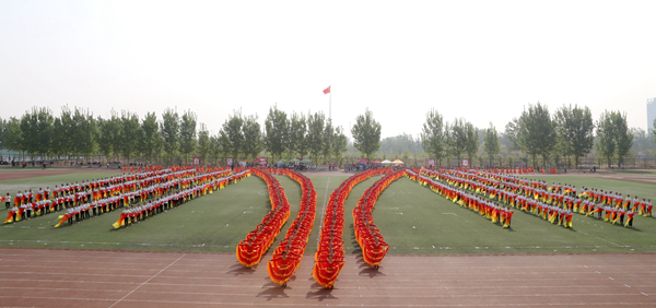 开幕式结束后,活力四射的团体表演正式开始。表演共分为“阳光路上,砥砺前行”和“乐道青春,筑梦济世”两个篇章,八百余名同学身着特色裙装、手拿红黄彩扇,伴着优美动听的音乐,起跳、旋转、变换队形,精彩的表演赢得观众的阵阵欢呼和掌声。团体表演之后,各院(系)啦啦操代表队举行了比赛。