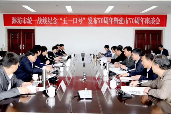 10时许,纪念中共中央发布“五一口号”70周年暨建市70周年座谈会在办公楼三楼会议室举行。