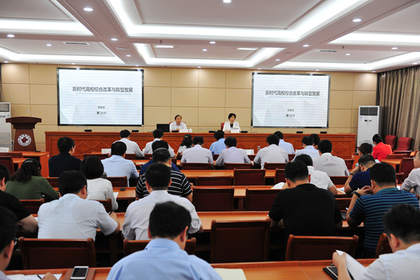 学习会上,厦门大学博士生导师、中国高教学会院校研究会副理事长别敦荣教授作了题为《新时代高校综合改革与转型发展》的专题辅导报告;对外经济贸易大学熊李力教授作了题为《新时代中国特色大国外交与中美关系》的专题辅导报告。